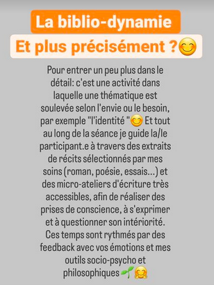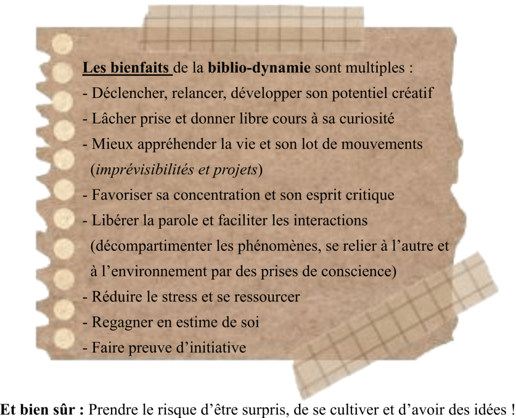 "La biblio-dynamie a pour ambition de favoriser un changement profond et serein dans son rapport à soi et à l'autre".Penser – S’exprimer – Cheminer