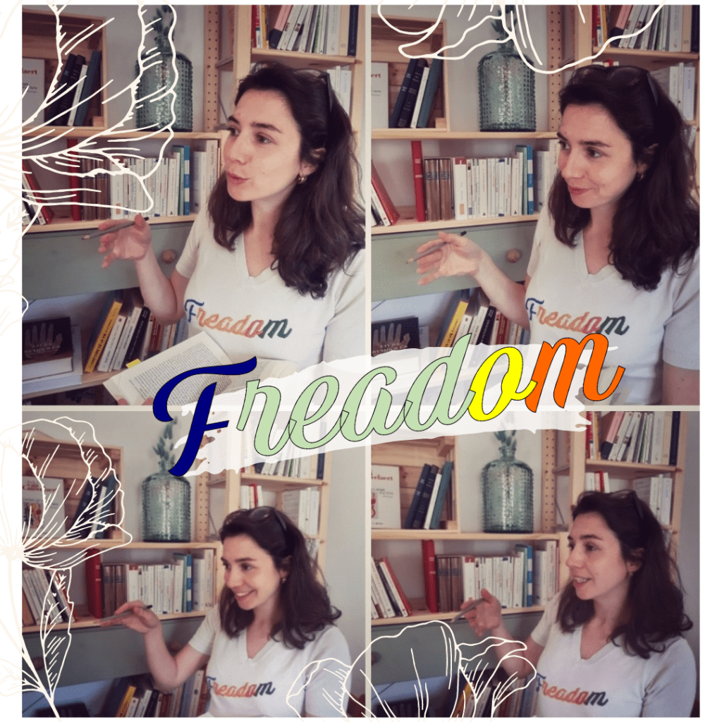 A l’occasion de l’événement « Partir en livre » sur la liberté, j’ai réalisé une séance spéciale autour de cette thématique et… irrésistiblement, j’ai porté mon t-shirt « Freadom », petite création perso cousue main.
