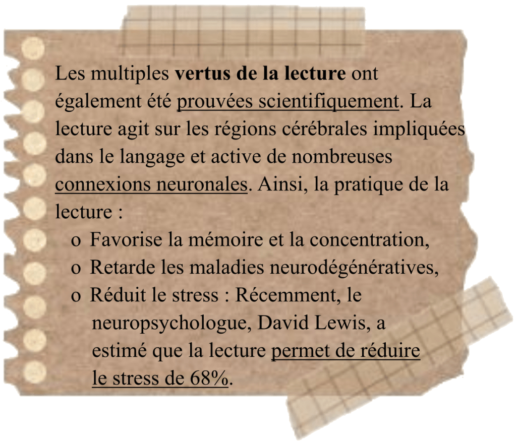 - La lecture mais aussi l’écriture et la conversation sont utilisés lors d’une animation de groupe ou un accompagnement individuel personnalisé en vue de stimuler les capacités cognitives.